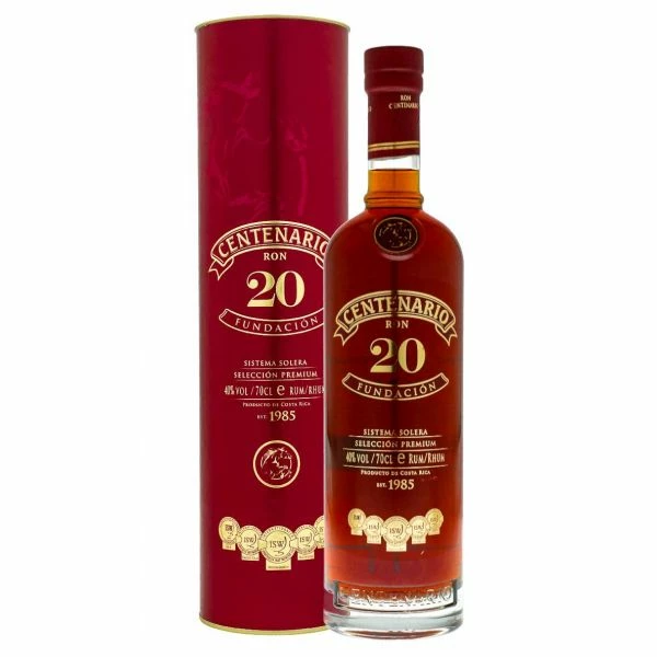 El Ron Centenario 20 años Fundación es el resultado de un añejamiento lleno de tradición con rones seleccionados por herencia y legado utilizando el método Solera con rones de 6 hasta 20 años que le aportan un toque de elegancia, esencia a roble y un delicioso y suave aroma a vainilla con notas de brandy.